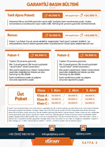 Site seçimi yapılamamaktadır. Örneğin Paket-2'ye (78.500TL'ye) ek olarak 34.500TL ödeyerek Klass B'den bir haber